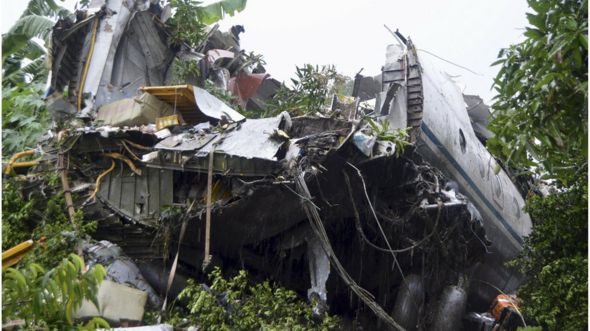Police were seen pulling the bodies of men, women and children from the wreckage of the plane, with debris and cargo strewn over a wide area along a bank of the White Nile River.